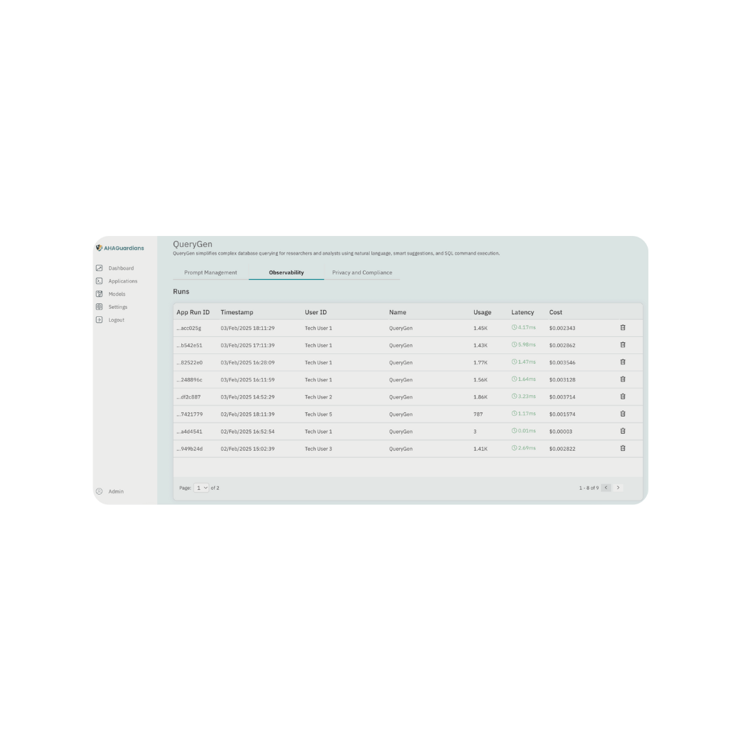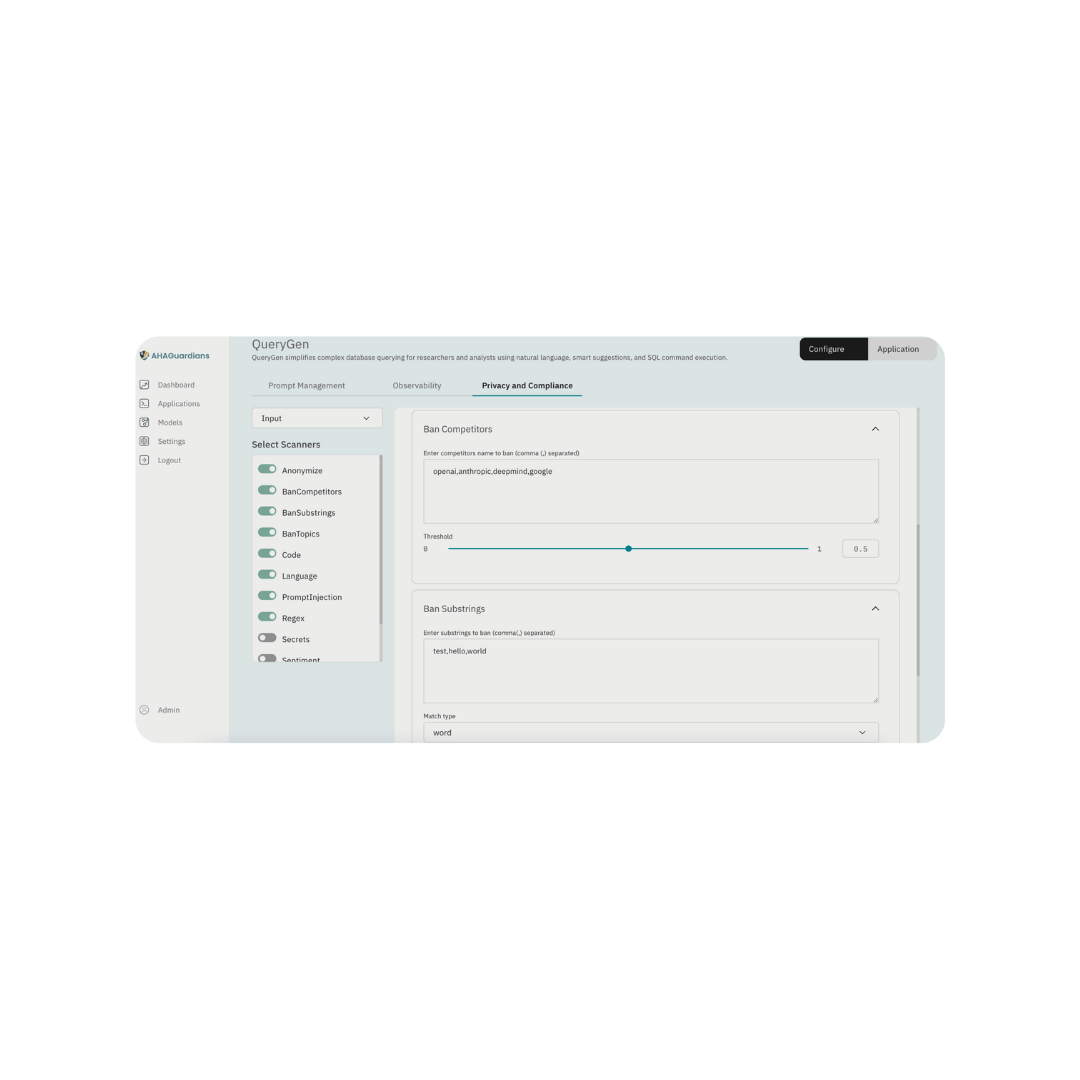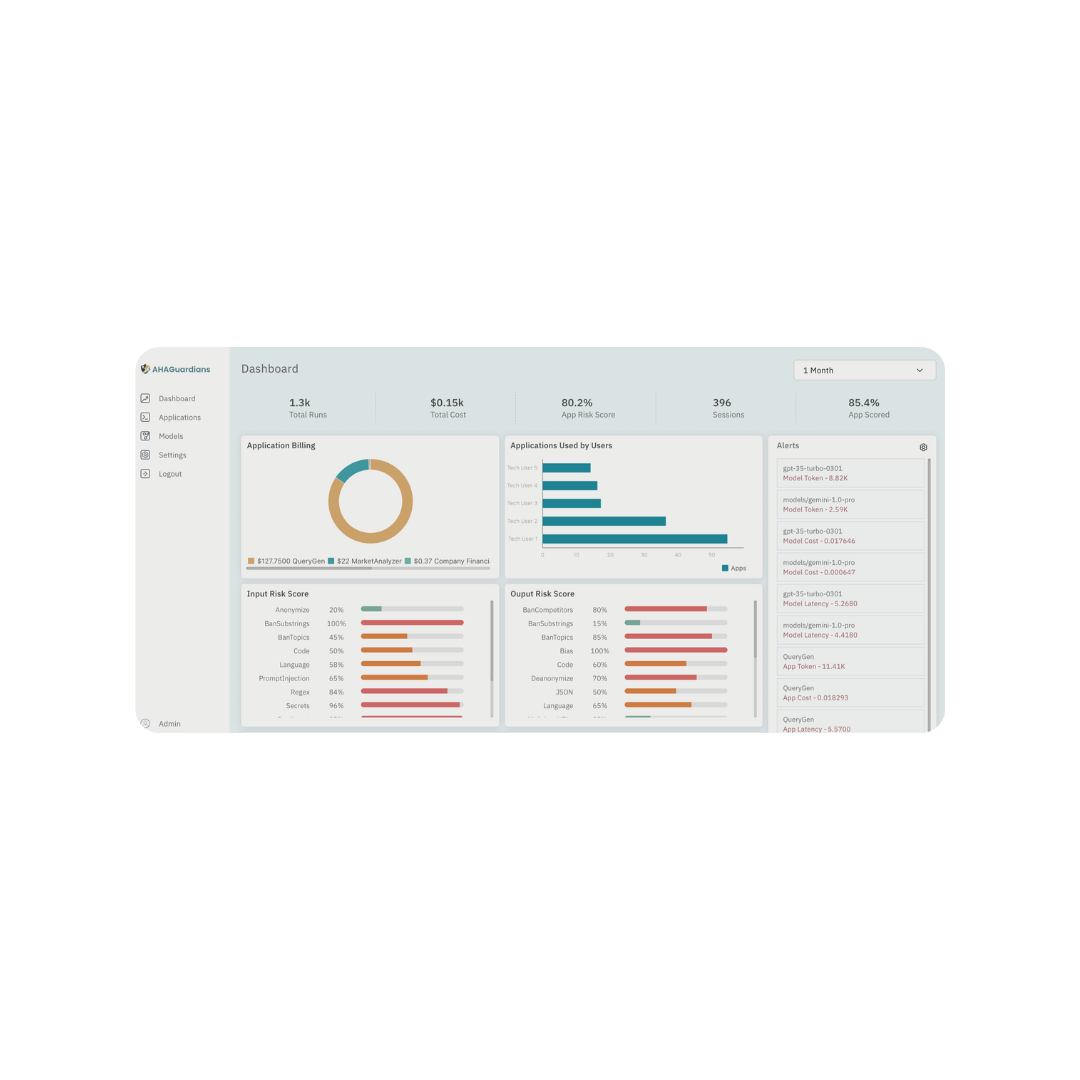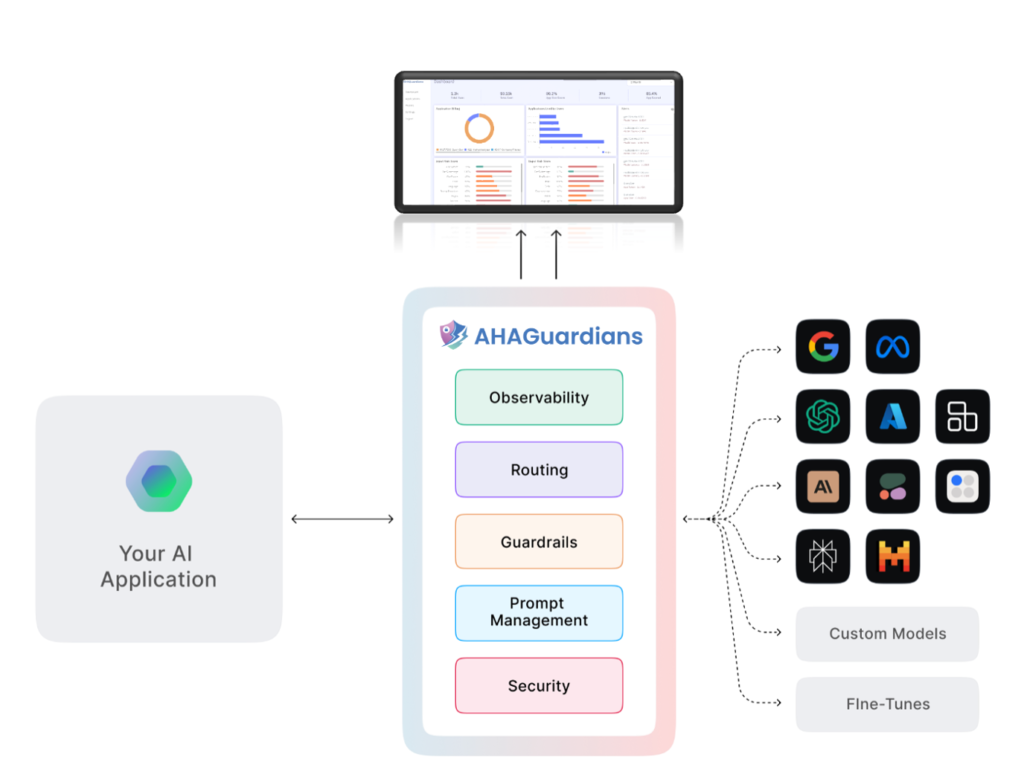 AHAGuardians supports integrations across a wide range of AI platforms and models, including leading cloud providers like AWS, Azure, and GCP, their respective LLM models, proprietary AI models, and popular open-source models. This comprehensive integration ensures seamless governance, security, and privacy protection for diverse AI deployments.